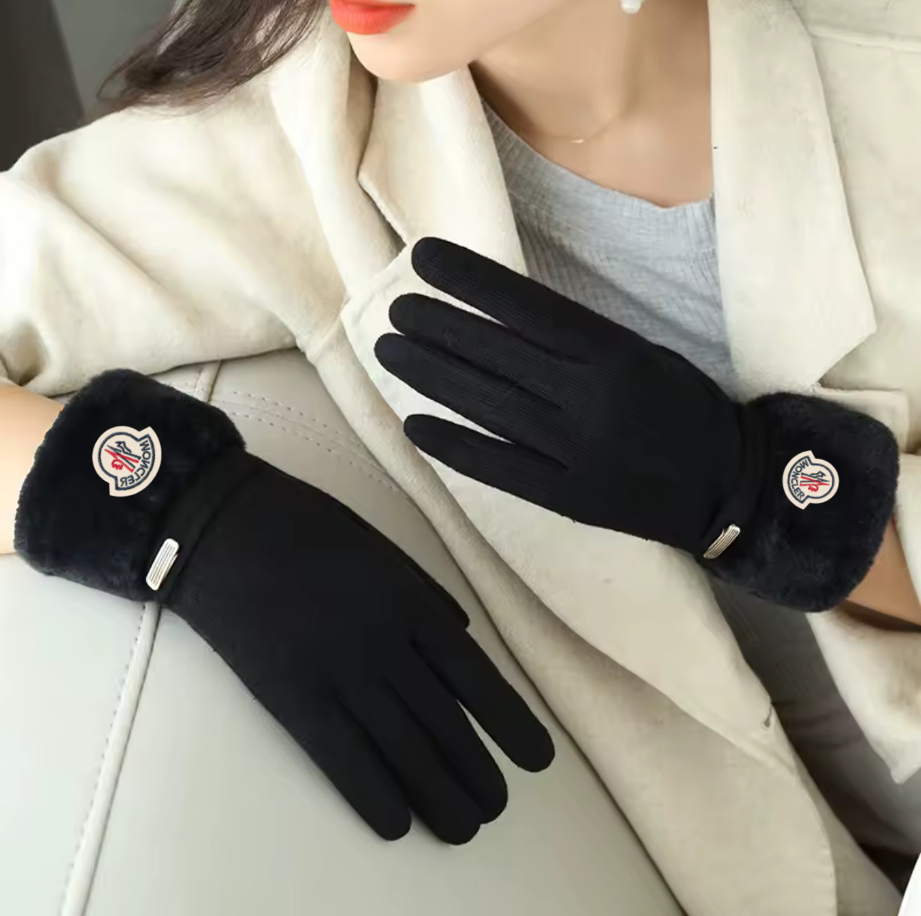Γάντια Moncler Με Γουνα Μαυρο Μπεζ