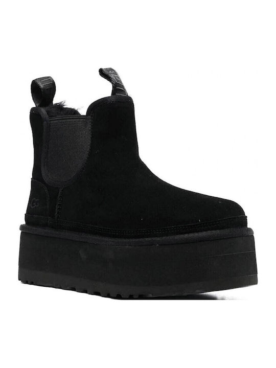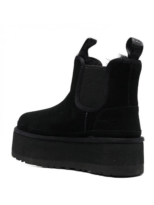 Ugg Australia Neumel Δερμάτινα Γυναικεία Chelsea Μποτάκια με Μεσαίο Τακούνι Μαύρα